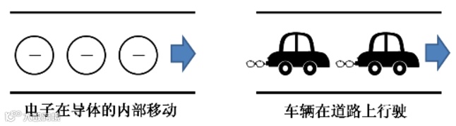 <电路是道路,电荷是车>如果将一个电路比作马路的话,电荷的移动就好像车流一样。