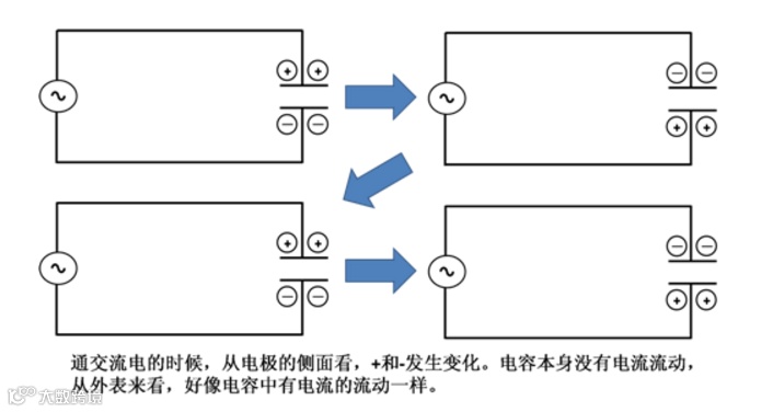 <电容阻断直流电,仅可通交流电>电容不可通直流电,如果重复充电、放电,在电容中将会反复流动充电电流和放电电流。这种现象可通过电容的外观观察电流是否流经电容。