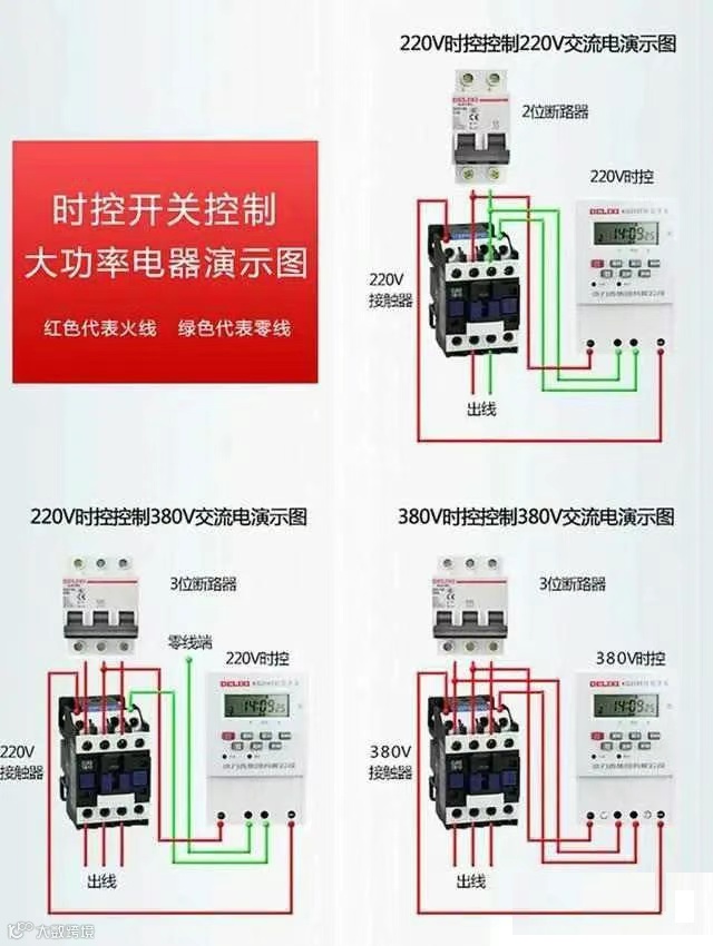 如果说是被控制的负载功率超过600W,最好使用交流接触器进行扩容量控制。此时的时控开关直接控制交流接触器。
