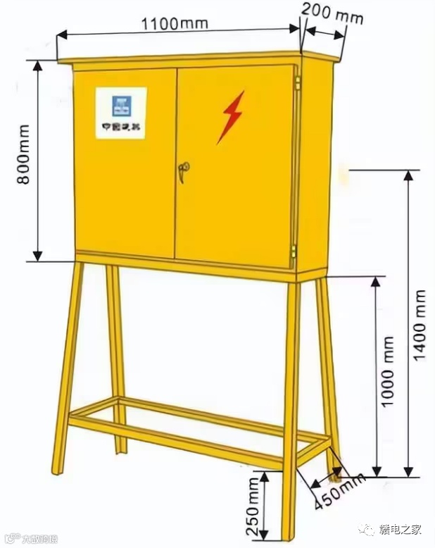 3、固定式分配电箱中心点与地面的垂直距离应为1.4m,配电箱支架应采用L40×40×4角钢焊制。