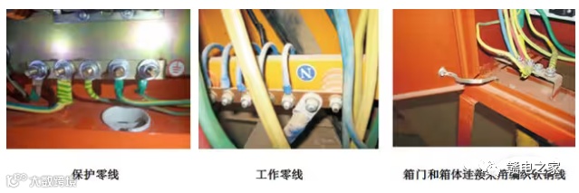 1、 配电柜(箱)、开关箱内电器安装板上必须分设工作零线(N线)和保护零线(PE线)接线排(端子板)。工作零线(N线)接线排必须与金属电器安装板绝缘。保护零线(PE线)端子板必须与金属电器安装板和重复接地做电气连接。金属箱门与金属箱体必须通过采用编织软铜线做电气连接。