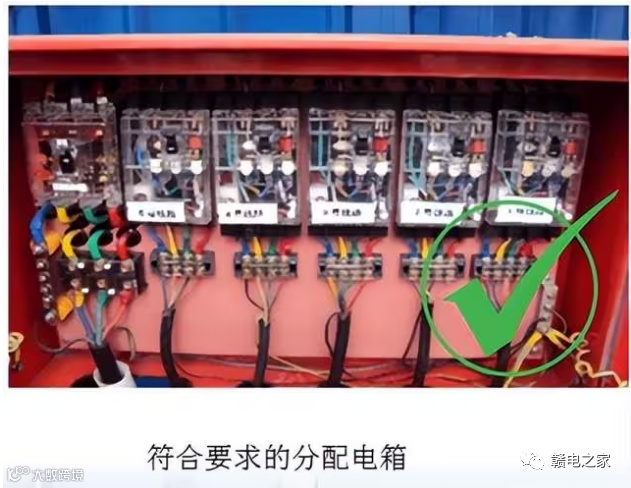 4、开关箱中的隔离开关只可直接控制照明电路和不大于3.0KW的动力电路,但不应频繁操作;容量大于3.0KW的动力电路应采用断路器控制;对频繁操作用电设备应加设接触器或其他启动控制装置。