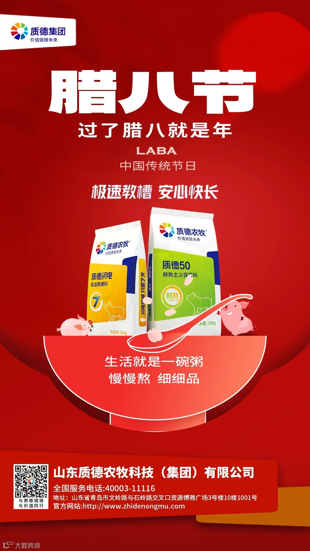 导读:时值腊八节,愿幸福常伴您“粥“围,生活安顺、甜蜜无限。质德农牧专业服务,便捷贴心、事事“粥”全。我们万分努力,只为您“10分“满意!