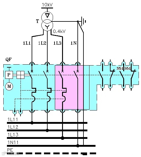 图中我用青色框标明的区域就是断路器,当然,这台断路器是低压配电室里面用的,而用粉色框框起来的部分与问题有关。