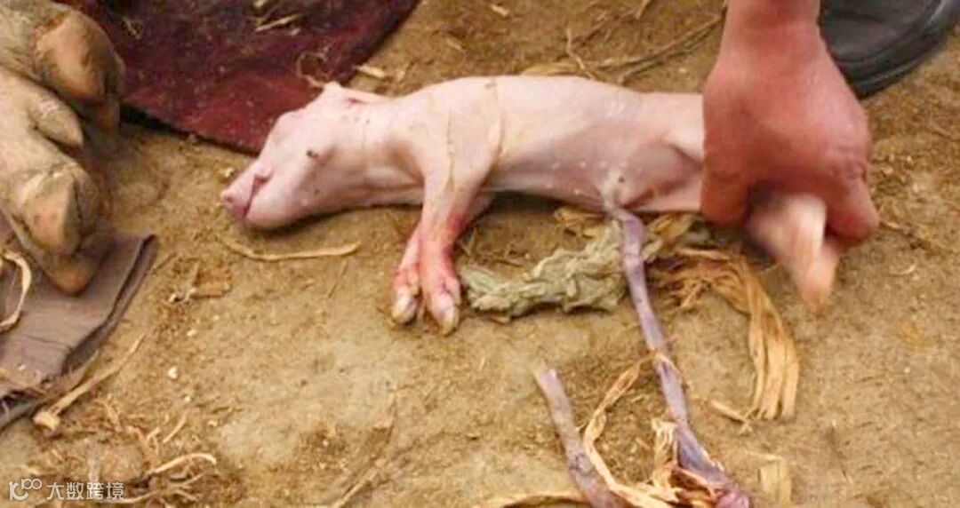 (1)胎儿出生时立即扯断脐带,或胎儿刚露出头或后肢时,接产人员就会辅助将胎儿拉出,然后立即把脐带扯断。