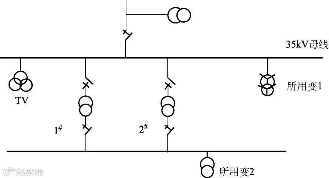 ③二次选择系统。两台降压变压器各接一独立一次电源。每台变压器的二次侧通过合适的开关和保护装置连接各自的母线。两段母线间设联络开关与保护装置,联络开头正常是断开的,每段母线可供接一回或多回二次放射式馈电线。