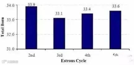 △图4第一次配种时所处发情周期对头三胎的总产仔数影响(N.Williams,2005)