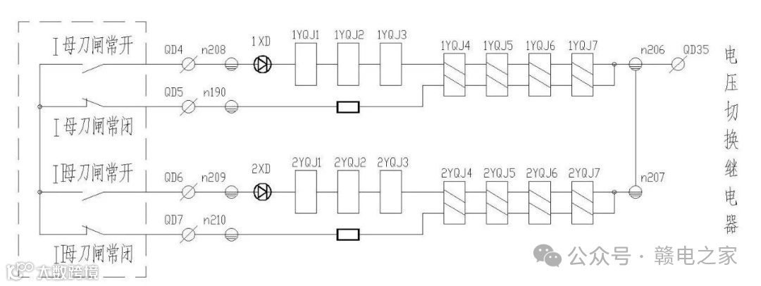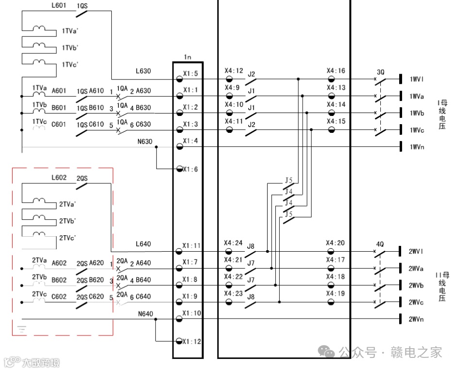 对于双母线接线,同样的,当#1母线上的PT停运,也可以通过电压并列将#2母线PT的二次电压提供给#1母线上的线路的保护与计量装置。