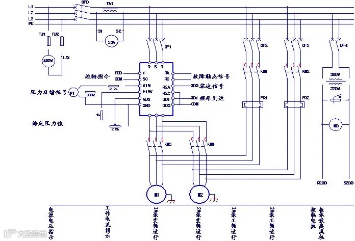 1.看电源,首先看清电源的种类,是交流还是直流,其次,要看清辅助电路的电源是从什么地方接来的,及其电压等级,电源一般是从主电路的两条相线上接来,其电压为380V,也有从主电路的一条相线和一零线上接来,电压为单相220V,也可以从专用隔离电源变压器接来,电压有140、127、36、6.3V等。