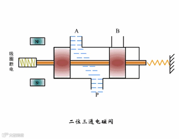 补充:电磁阀是电源通过电磁线圈产生磁场力,带动弹簧等执行机构来控制气路管道,液体管道,油管道等等的通断来达到控制目的的,可以单独使用,也可以配合气路或者液路共同使用。