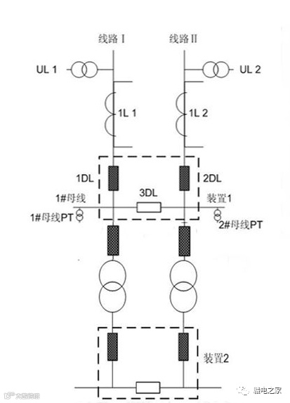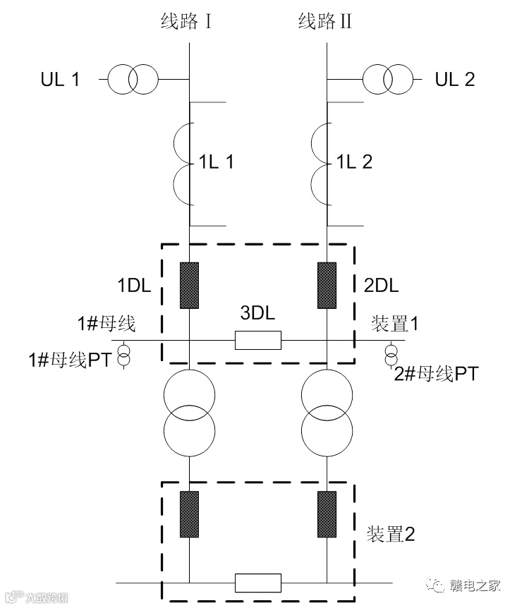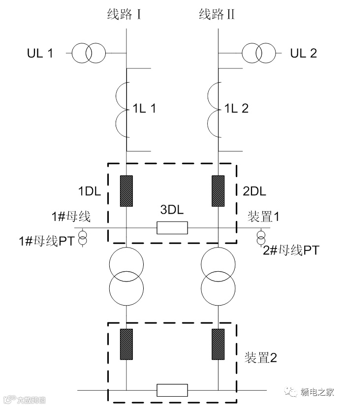 正常运行时,两线路 PT 均有压,两段母线均有压,1DL 和2DL 中的一个开关在合位,另一个在分位,3DL 在合位。