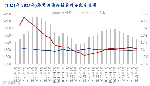 图2 2021-2023年能繁母猪存栏量同环比走势图