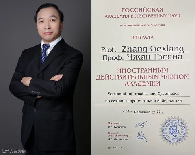 俄罗斯自然科学院(Russian Academy of Natural Sciences,RAEN)院长库兹涅佐夫、首席学术秘书长伊万尼茨卡娅向成都信息工程大学自动化学院院长张葛祥教授发来证书和贺信,祝贺他当选为俄罗斯自然科学院外籍院士。
