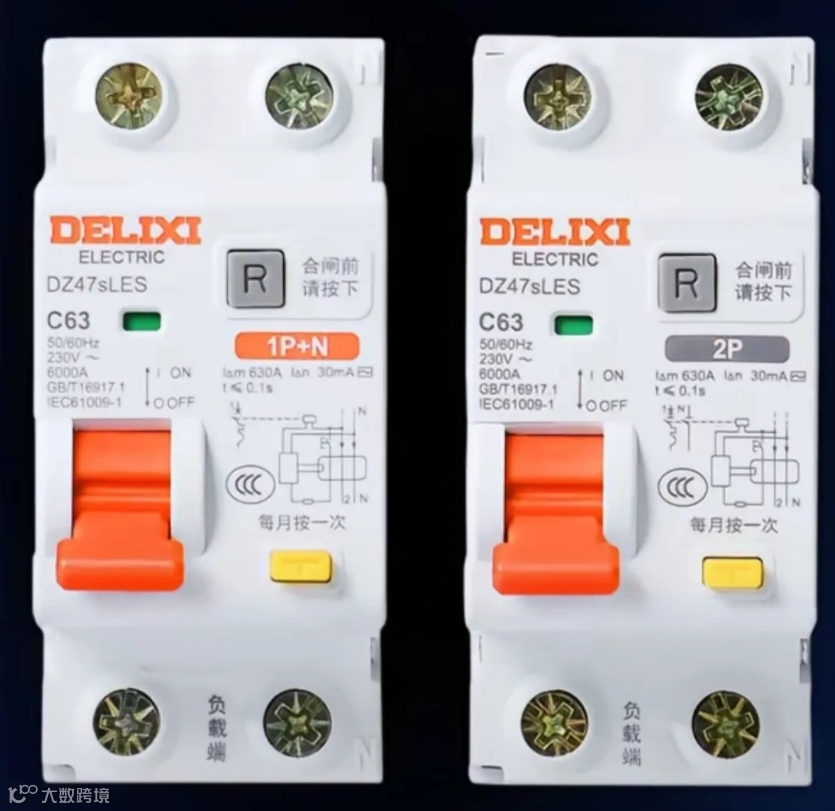 电友B回答: 这两个漏电保护空开应该讲功能上基本上是一样的,都是德力西C型(用于照明线路保护)的小型空气断路器,且漏电保护电流和触发时间一样,都是30mA和0.1秒。进线与出线要按标注的进行接线,N固定接零线进与出,功能上的区别只是区别在于图一在跳闸时只断火线,零线无断开,而图二的开关在跳闸时火线、零线同时断开。仅此而已。