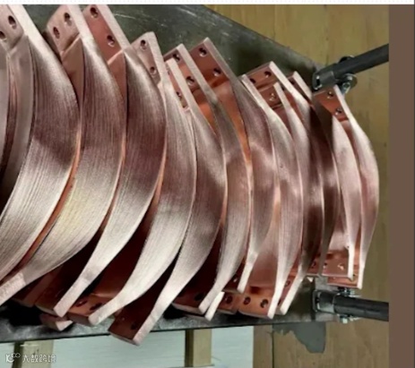 给解释一下:这叫铜箔软连接又叫铜带软连接、铜片式软连接,是采用优质的0.05~0.3mm厚铜箔为原材料,将铜箔叠片部分压在一起,通过高分子扩散焊机的大电流高温加热使其分裂熔解压焊成型。