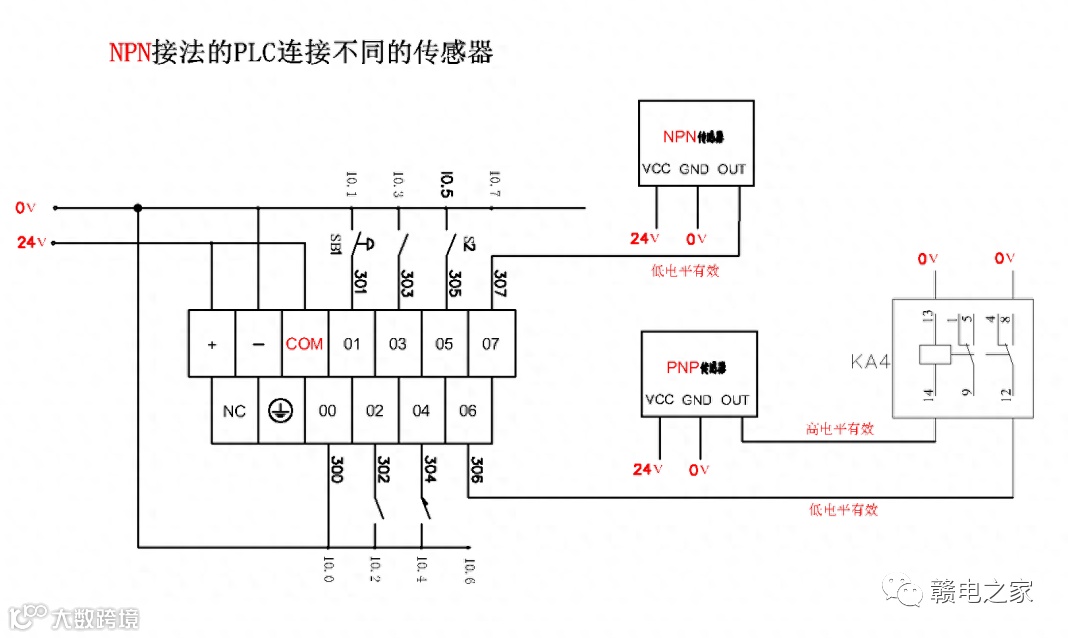 NPN接法的PLC使用两种传感器