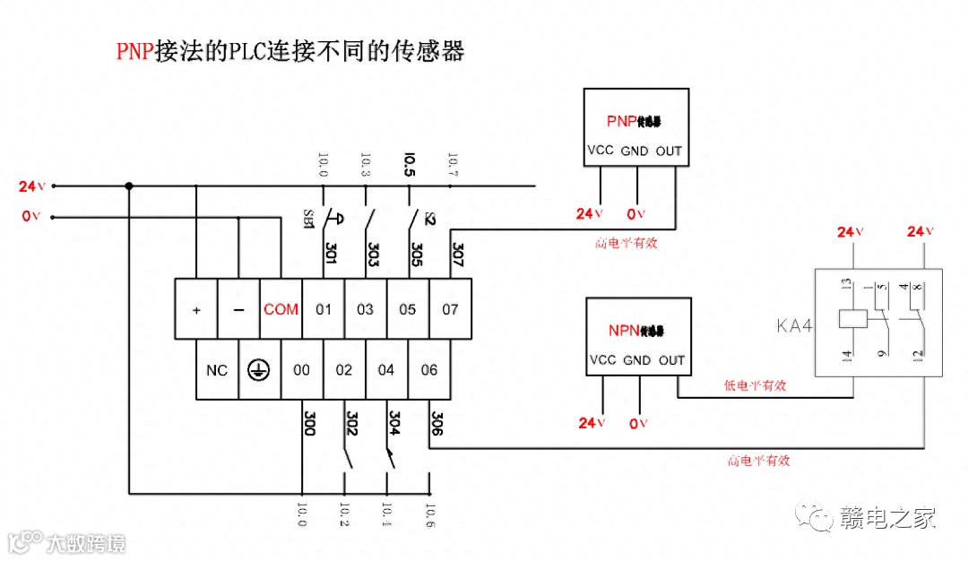 PNP接法的PLC使用两种传感器