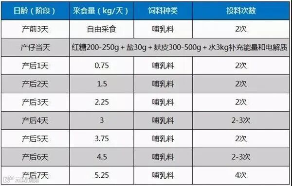 备注:用数字来表达就是7-3-3-7,炎热的夏季产房温度过高,饲喂时间可适当调整。