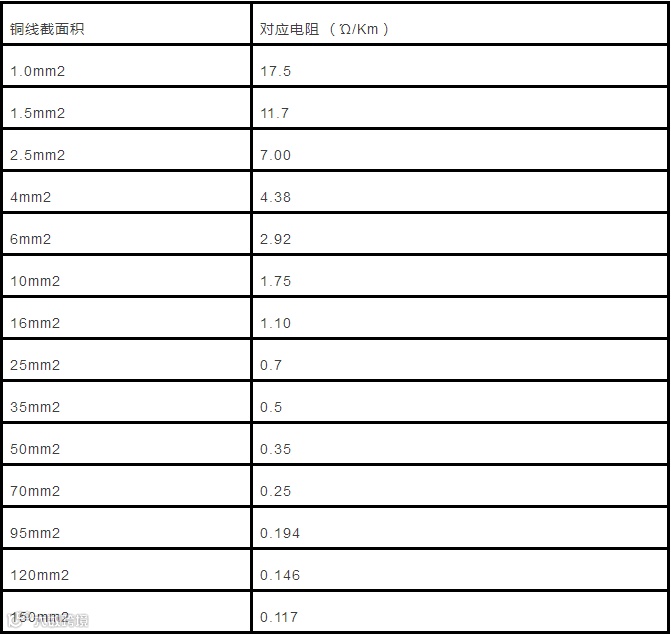20℃时:17.5÷截面积(平方毫米)=每千米电阻值(Ω)