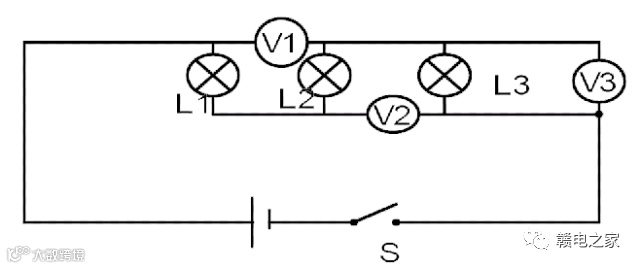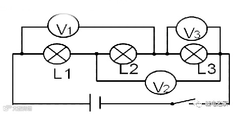 ☀例3 : 电路开关闭合后,v1、v2、v3的示数分别是8V、9V、4V,则L1、L2、L3两端的电压各是多少?
