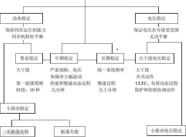 1、发电机同步运行的稳定性问题(根据电力系统所承受的扰动大小的不同,又可分为静态稳定、暂态稳定、动态稳定三大类);