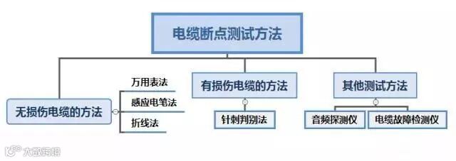 这种方法是利用电缆的通断来排查电缆的断点所在。将断点电缆上分段插入钢针,然后依次使用万用表测量通断状况。不同处即为断点所在处。但是该方法会破坏绝缘层,很容易在后期的电缆使用中,造成其他的问题。