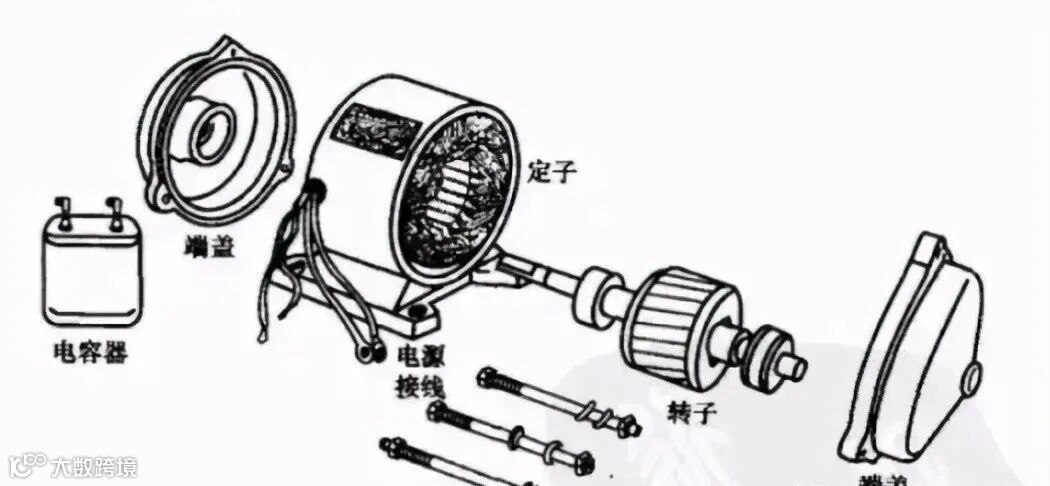 ▲ 一台拆开的单相异步电动机