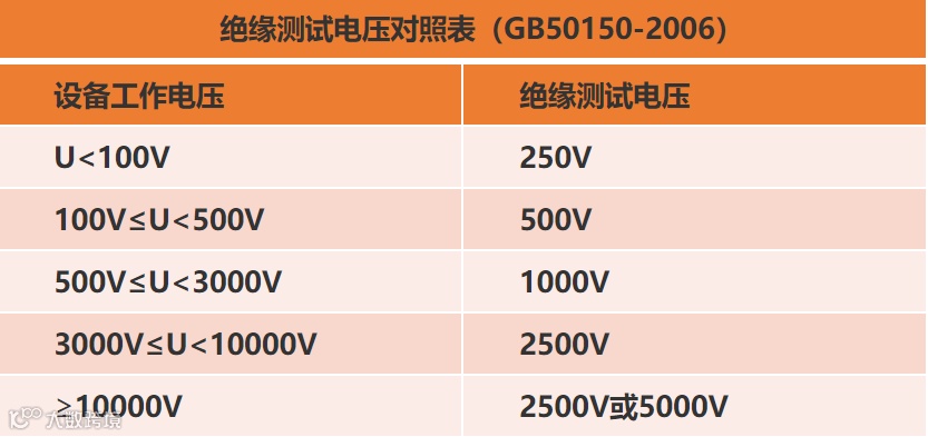 工作电压在3000V~10000V的电气设备或回路,使用2500V测试电压;