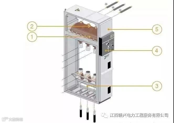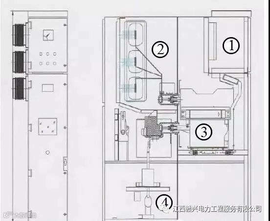 1、二次仪表室;2、母线室;3、断路器手车室;4、电缆室