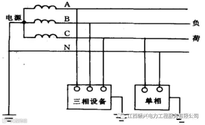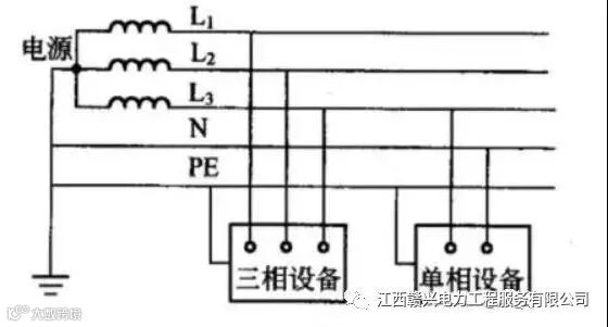 (2)、电源变压器中性点接地,保护零线(PE)与工作零线(N)共用(简称PEN),称为三相四线制系统。其中,中性线(N线)的作用: