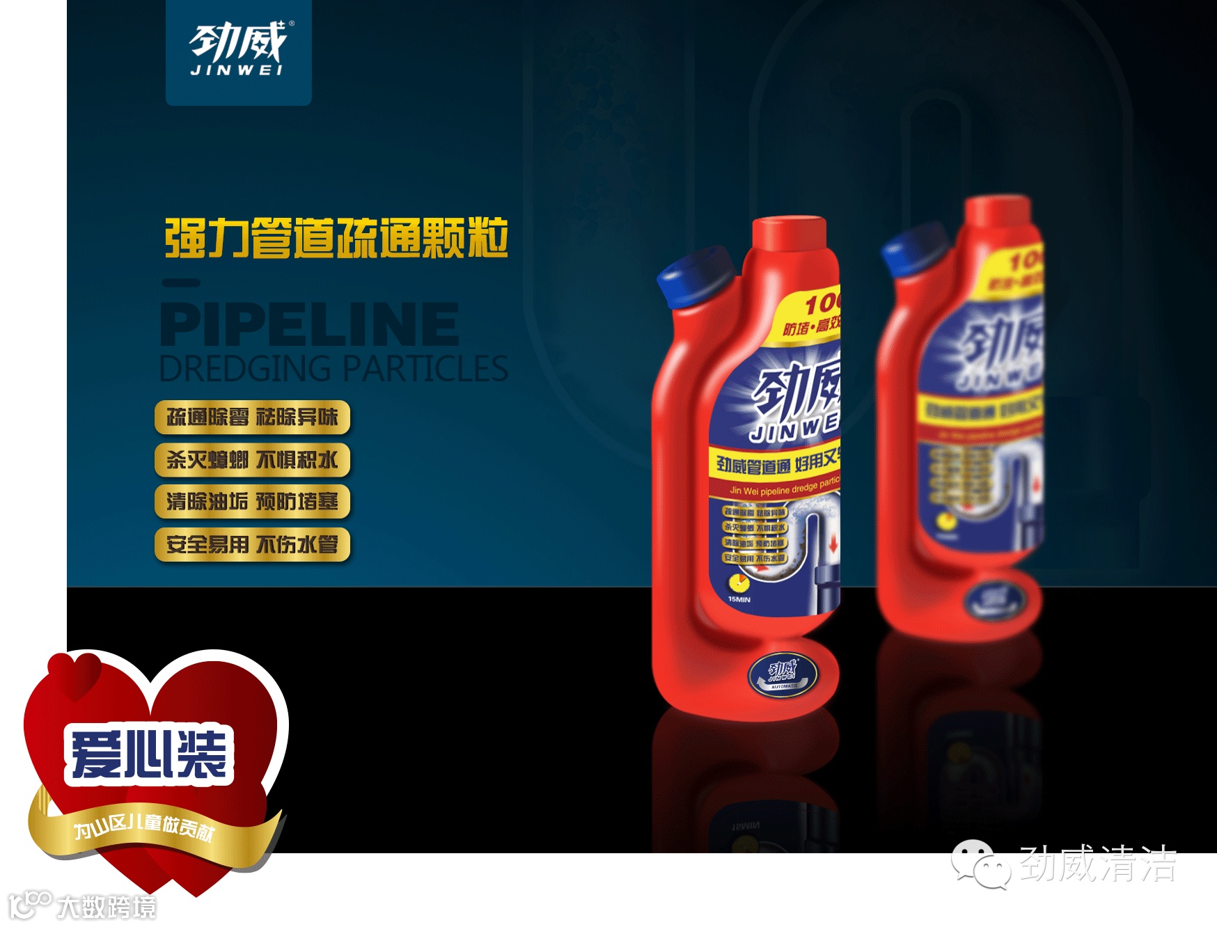 劲威管道通是全球首创通堵防堵型产品,是一种新型的厨卫管道疏通产品;主要是用于家庭、酒店、宾馆、发廊、洗浴中心、网吧等下水管道的疏通,专利配方管道疏通剂绝不伤管道。
