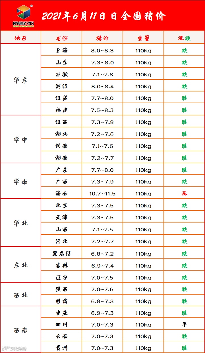 6月11日 全国猪价 山东质德农牧