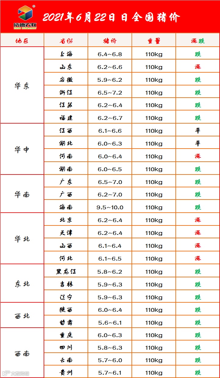 6月22日 全国猪价 山东质德农牧