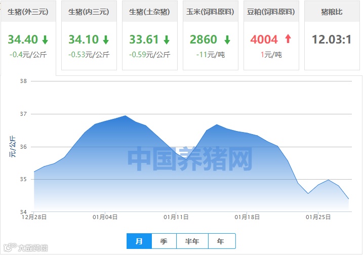 | 地区名称 | 外三元(元/公斤) | 内三元(元/公斤) | 土杂猪(元/公斤) | 玉米(元/吨) | 豆粕(元/吨) |
