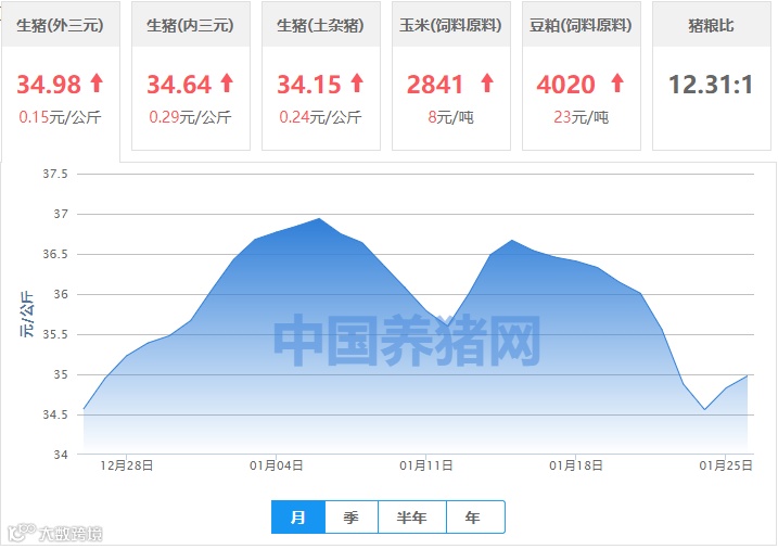 | 地区名称 | 外三元(元/公斤) | 内三元(元/公斤) | 土杂猪(元/公斤) | 玉米(元/吨) | 豆粕(元/吨) |