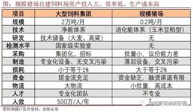 自建饲料厂投入大、生产成本高(建设费用,生产固定、生产变动等一系列繁杂费用),技术、研发、检测水平、制造、损耗等关键数据上,远远落后于大型饲料集团。
