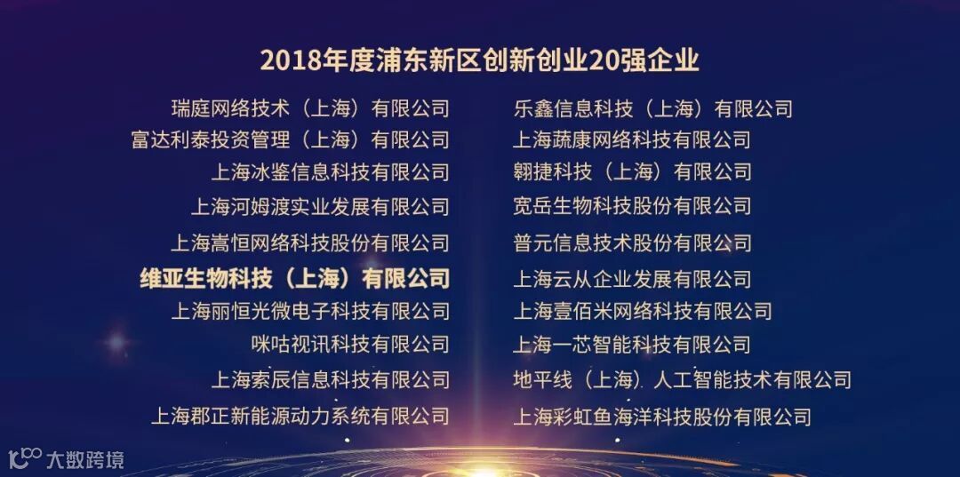 昨日,浦东新区隆重举办“2018年度浦东新区经济突出贡献企业表彰活动”,最终评选出了包括维亚生物在内的浦东新区创新创业20强企业。