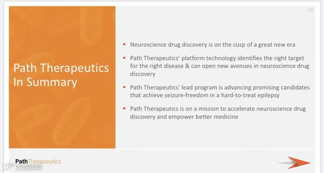 “目前全球三分之一的癫痫患者是难治性患者,对市面上药物完全不响应,很大程度上是因为市面上药物缺乏新的作用机制和新的靶点。Path Therapeutics基于线粒体代谢的新靶点的筛选机制基础是建立在临床观察上,对于生酮饮食这个通过调节代谢治疗难治性癫痫是有确切的、临床试验验证的疗效证据的。这个平台除了在癫痫上的作用外,对其他的CNS疾病也有很大的应用潜力。”