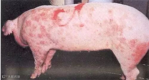 主要是耳根后出现大量针状出血点,呈弥漫性从毛孔渗出(这是比较典型的)从远处看猪全身通红,看猪的腹部,可见铁绣色出血点。