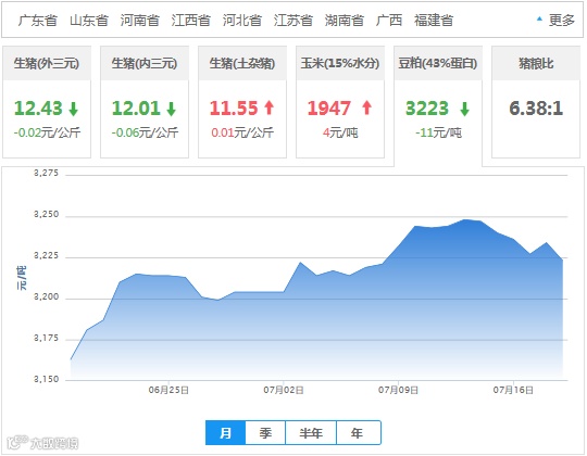2018年07月19日全国豆粕价格行情走势汇总