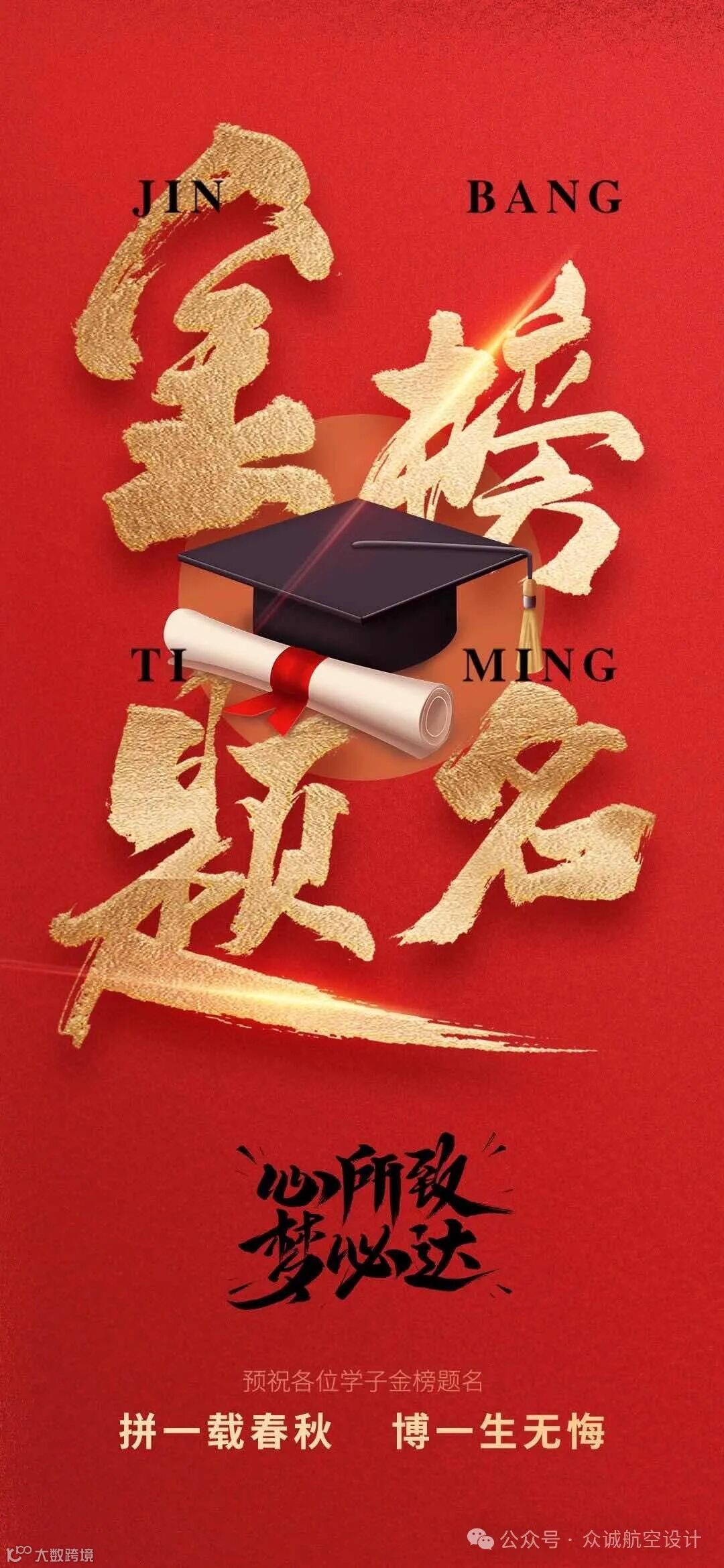 众诚航空设计预祝各位莘莘学子金榜题名!