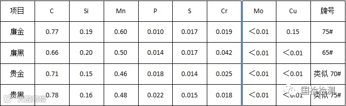 由表2数据得到,4组鱼钩含碳量都在0.6%以上,所以均为高碳钢。参考国家标准GB/T699-2015《优质碳素结构钢》进行比较,“廉金”和“廉黑”分别满足中75#钢和65#钢要求,推测材料可能为75#钢和65#钢。“贵金”和“贵黑”基本满足70#钢和75#钢要求,推测材料可能类似70#钢和75#钢。