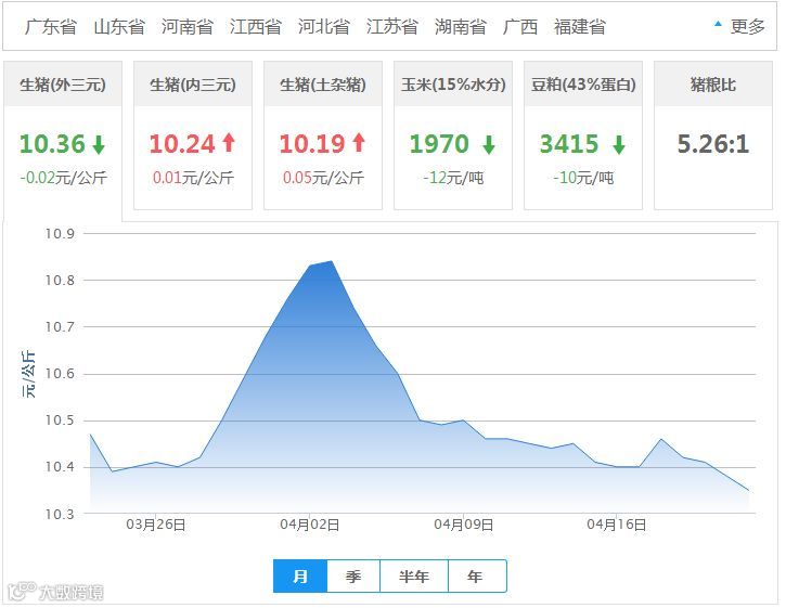 2018年04月22日全国外三元生猪价格行情涨跌表