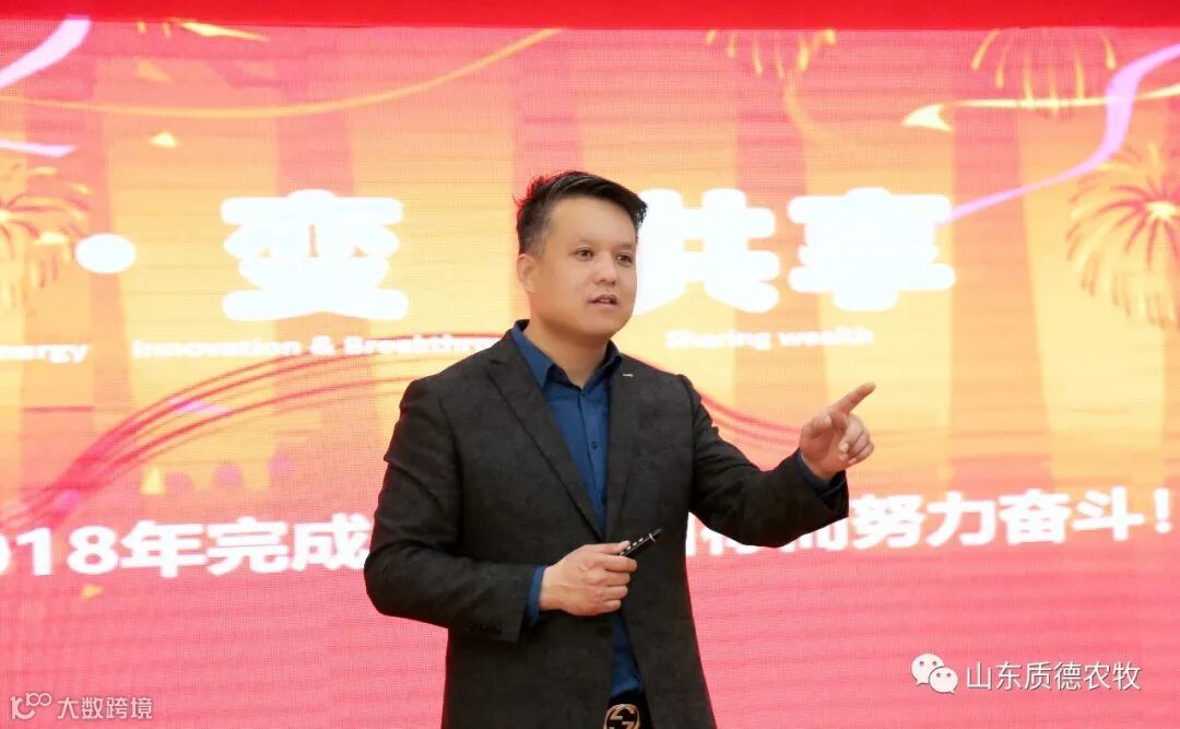 副总裁兼研发中心总监孙建荣先生——产品发力规范生产。产品研发与质德农牧制定了2018销量和利润翻一番的目标,研发中心针对部门工作做了深入的思考和布局;客户的变化需要我们做出一系列的改变;我们成长的欲望和翻一番的目标驱使着我们进步。