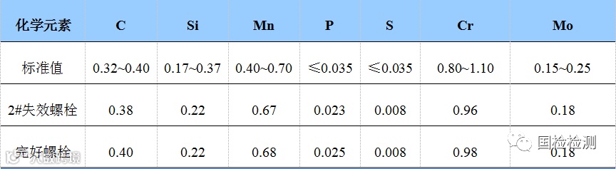 采用碳硫分析仪对2#失效螺栓与任选一枚完好螺栓分别进行化学成分分析,结果如表3所示,符合“GB/T 3077-2015”标准中关于35CrMo钢的规定。