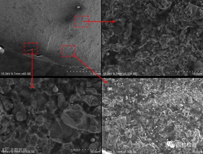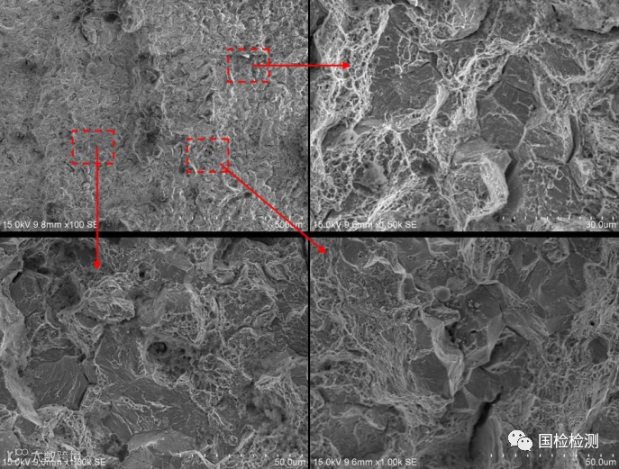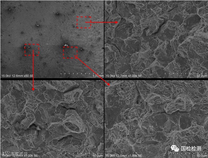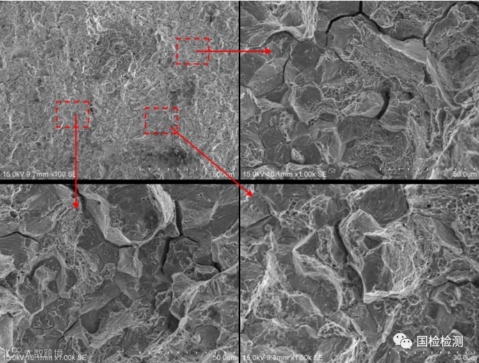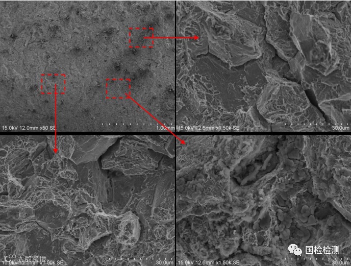 图11所示为D1区微观形貌,可见明显的沿晶形貌+准解理形貌,并伴随晶间二次裂纹。