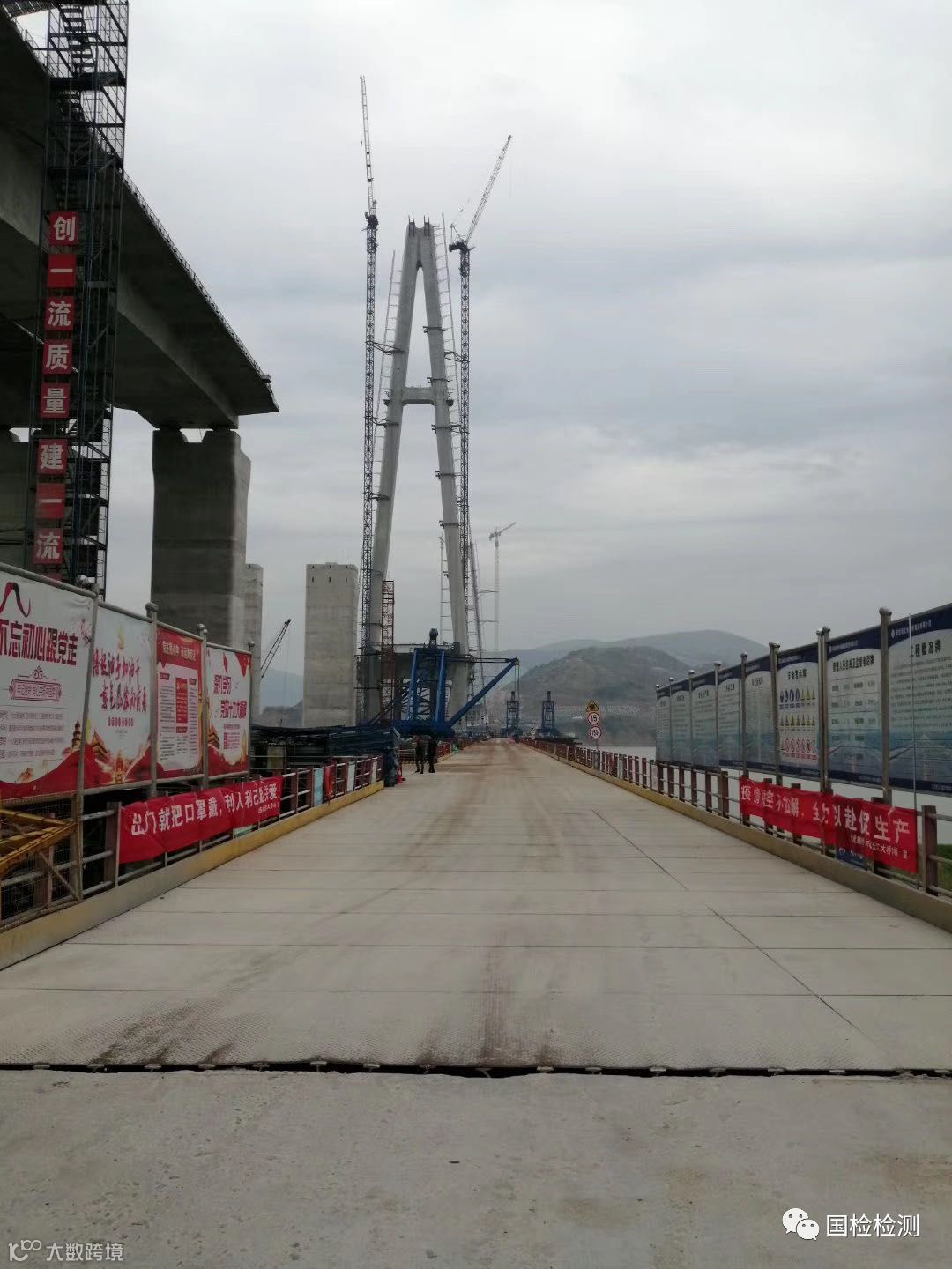 武穴长江公路大桥为双塔双索面混合梁斜拉桥,采用高速公路标准建设,大桥全长2051.5米,主跨808米,连接麻城、阳新、瑞昌,大桥建成后,将沪蓉、上海至武汉、沪渝、瑞杭等多条东西向高速连接成网,与济广、大广等国家高速公路共同构成南北向交通通道,对加强长江中游城市群经济联系具有重要意义。武汉国检承接武穴长江公路大桥钢箱梁制造及安装无损检测工作。