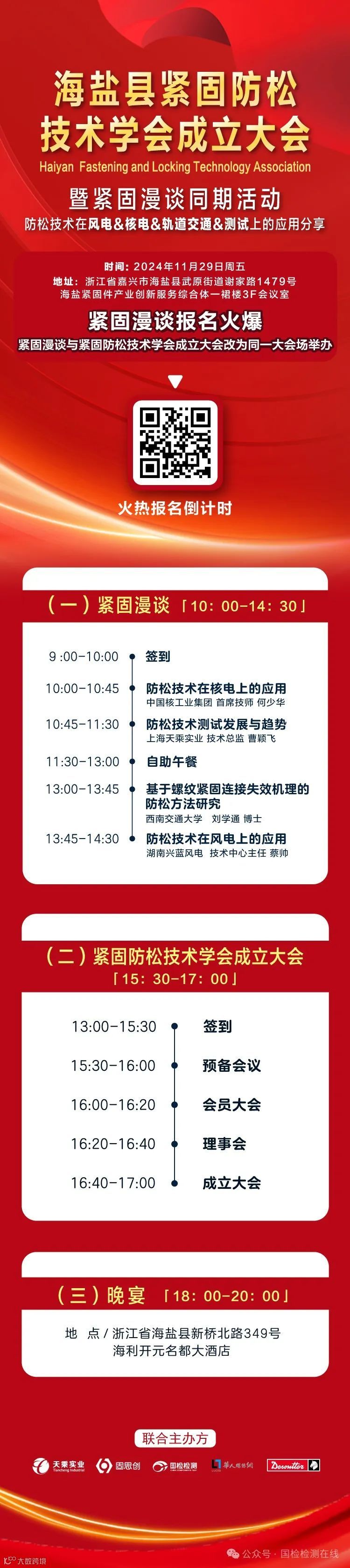 导读:海盐县紧固防松技术学会成立大会暨紧固漫谈火热报名中!