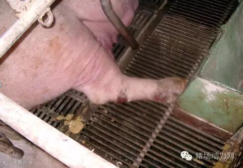 02、将母猪关在易滑的地板,而引起脚部紧张,造成骨骼的异常;