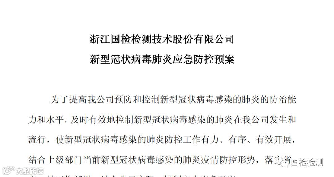 “国检检测”也积极开始部署公司开复工和疫情防控工作。